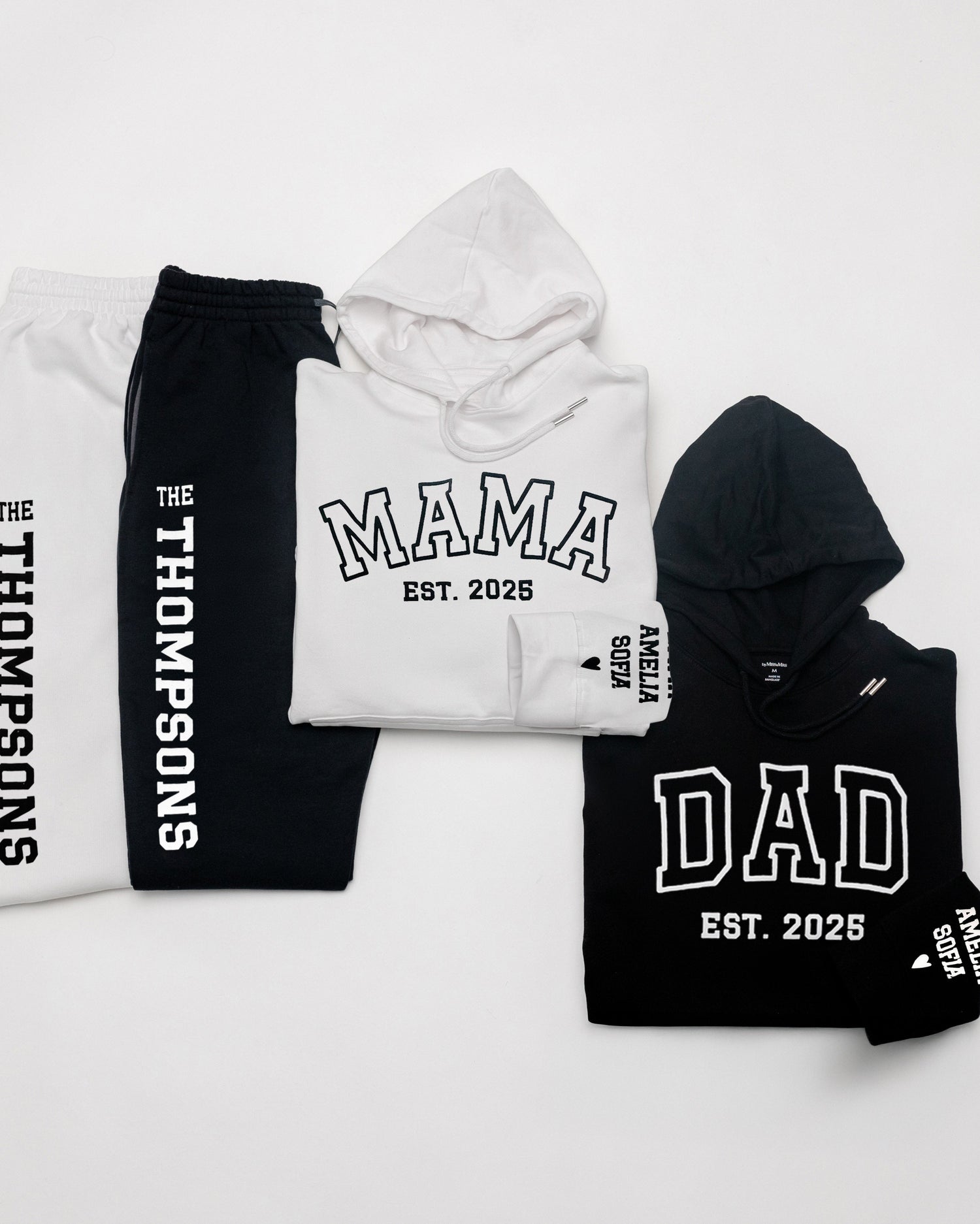 Celebrate parenthood in style with our Personalized Mama & Dad Hoodie & Joggers Sets — the perfect blend of cozy comfort, heartfelt details, and everyday cool.