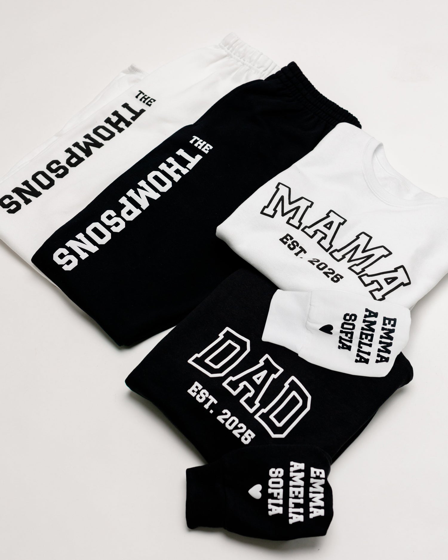 Celebrate parenthood in style with our Personalized Mama & Dad Sweatshirt & Joggers Sets — the perfect blend of cozy comfort, heartfelt details, and everyday cool.