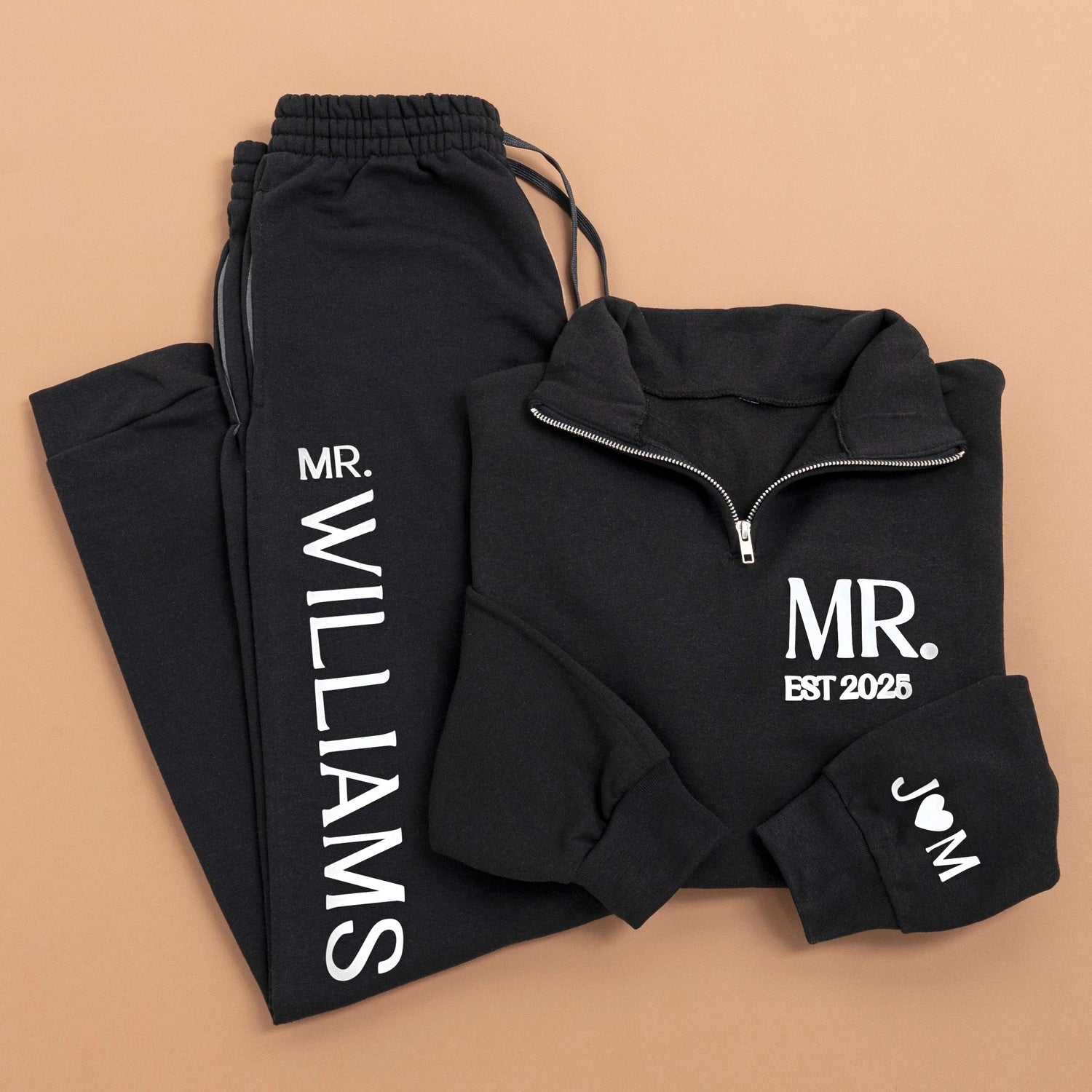 Embossed MR & MRS Quarter Zip/Joggers Sets - Contrast