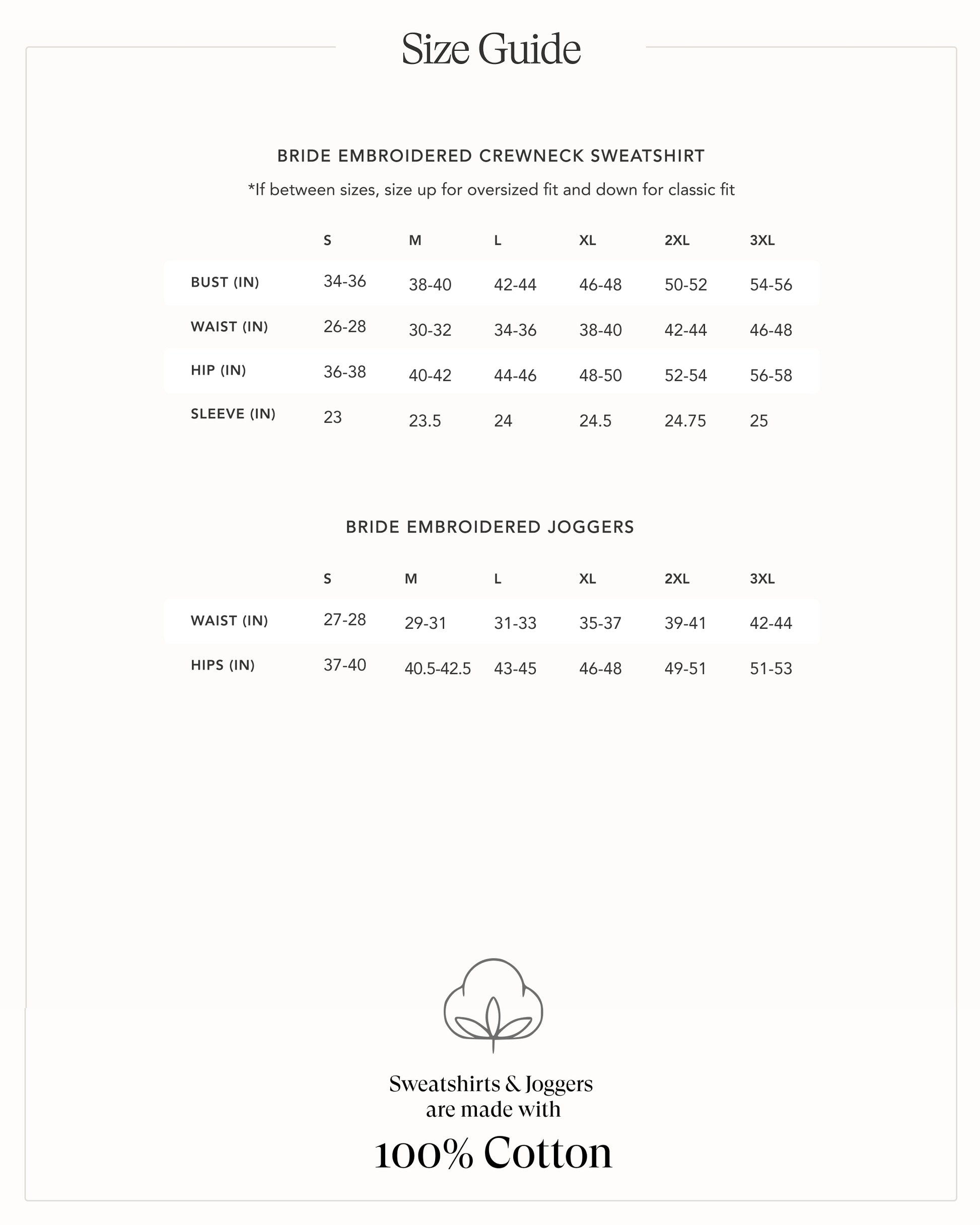 ★ Sweatshirts have BRIDE on the front, and joggers have BRIDE on the pocket by default and can't be removed.