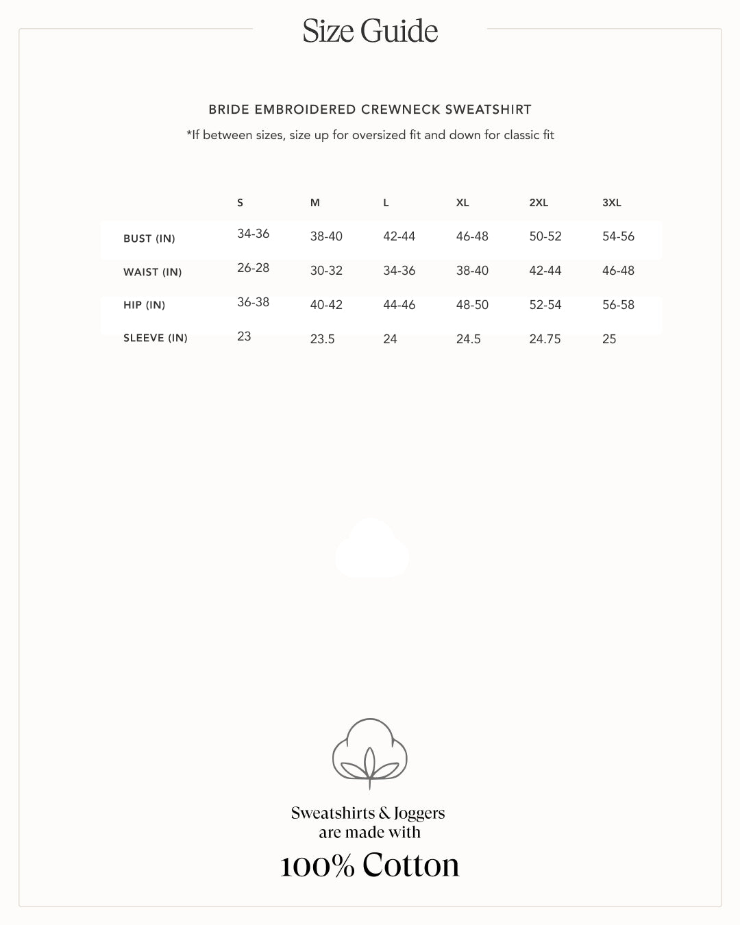 - Sweatshirts will have BRIDE but you can add additional personalization