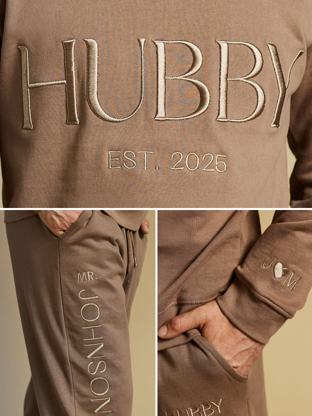Embossed WIFEY & HUBBY Sweatshirt/Joggers Sets - Contrast