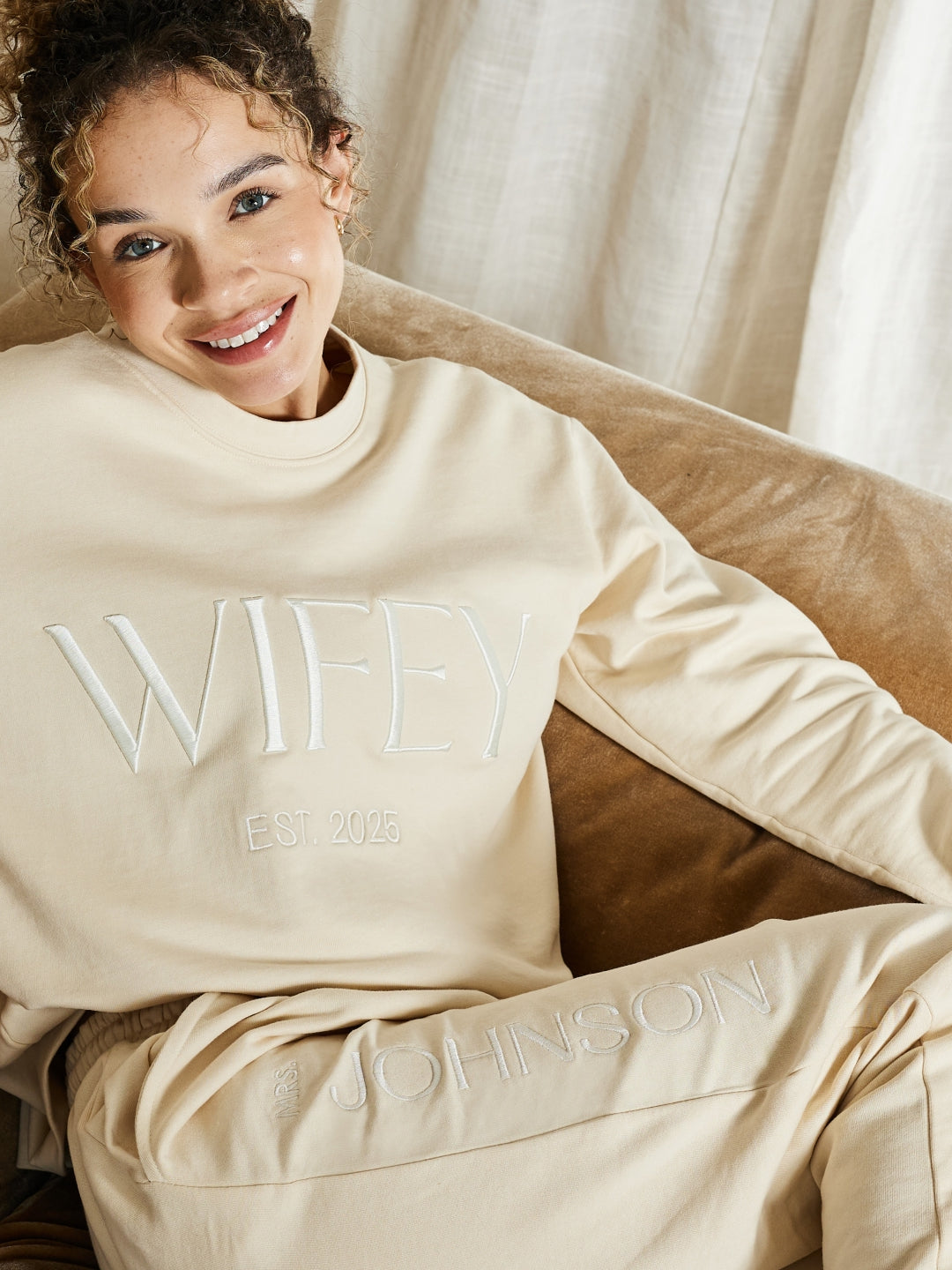 Embroidered WIFEY Sweatshirt & Joggers Set